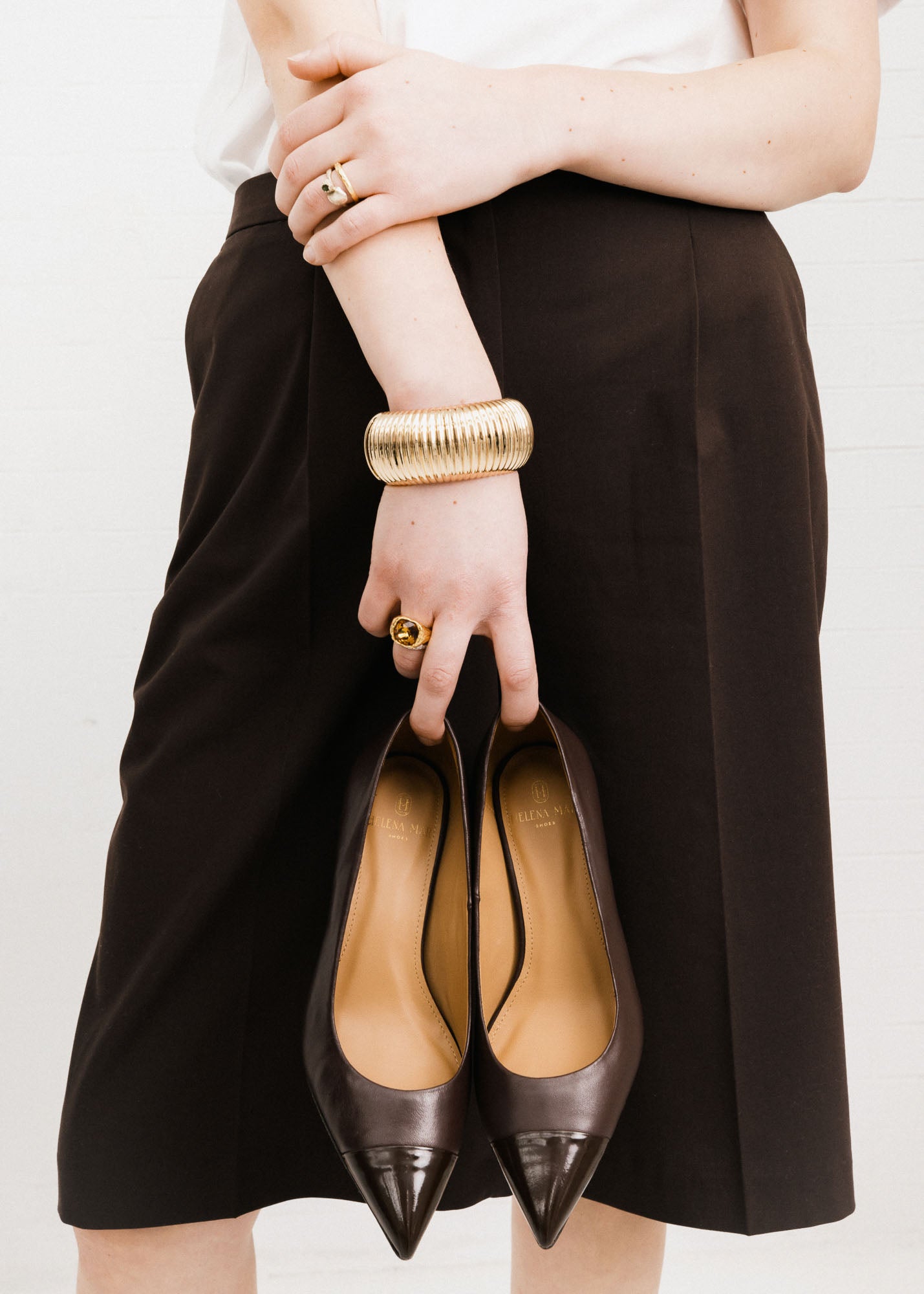 The pointed shape enhances its refined profile, while the exclusive Helena Mar heel adds a subtle architectural touch. With a comfortable 6 cm height, it offers elegance without compromise.