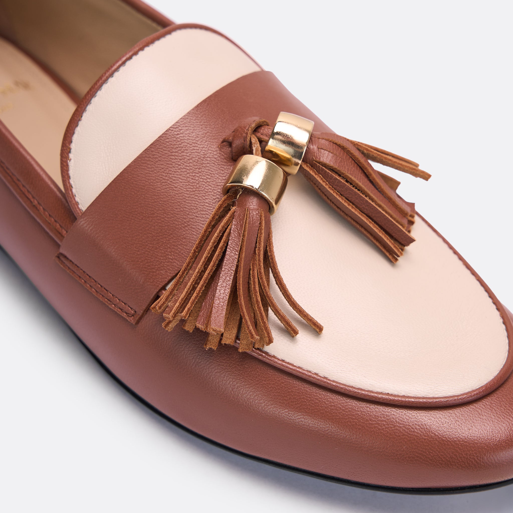 Classic meets contemporary: this camel and beige loafer with a refined application detail brings effortless sophistication to your wardrobe. With its soft tones and timeless silhouette, it’s the perfect pair to transition seamlessly from day to night.