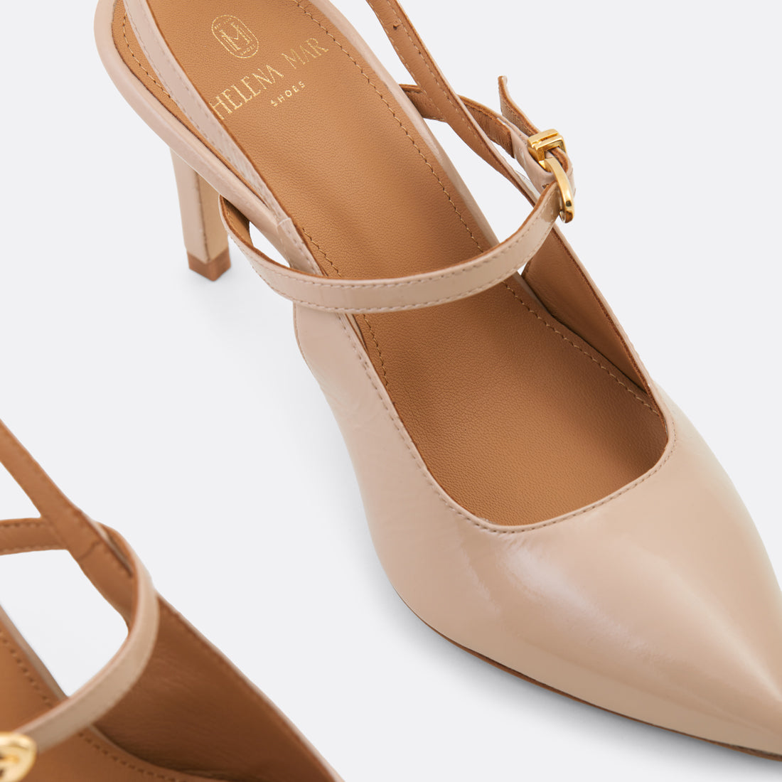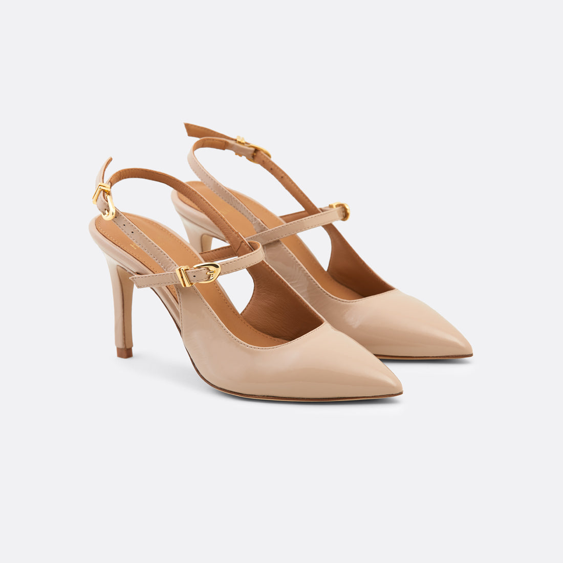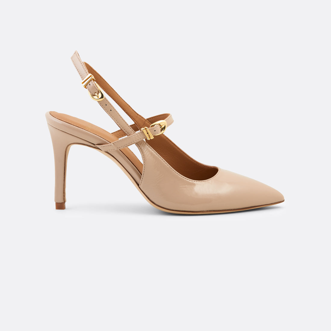 In beige, Gala embodies effortless elegance. The neutral tone enhances its pointed silhouette and delicate slingback strap, creating a graceful line that feels both modern and classic.
