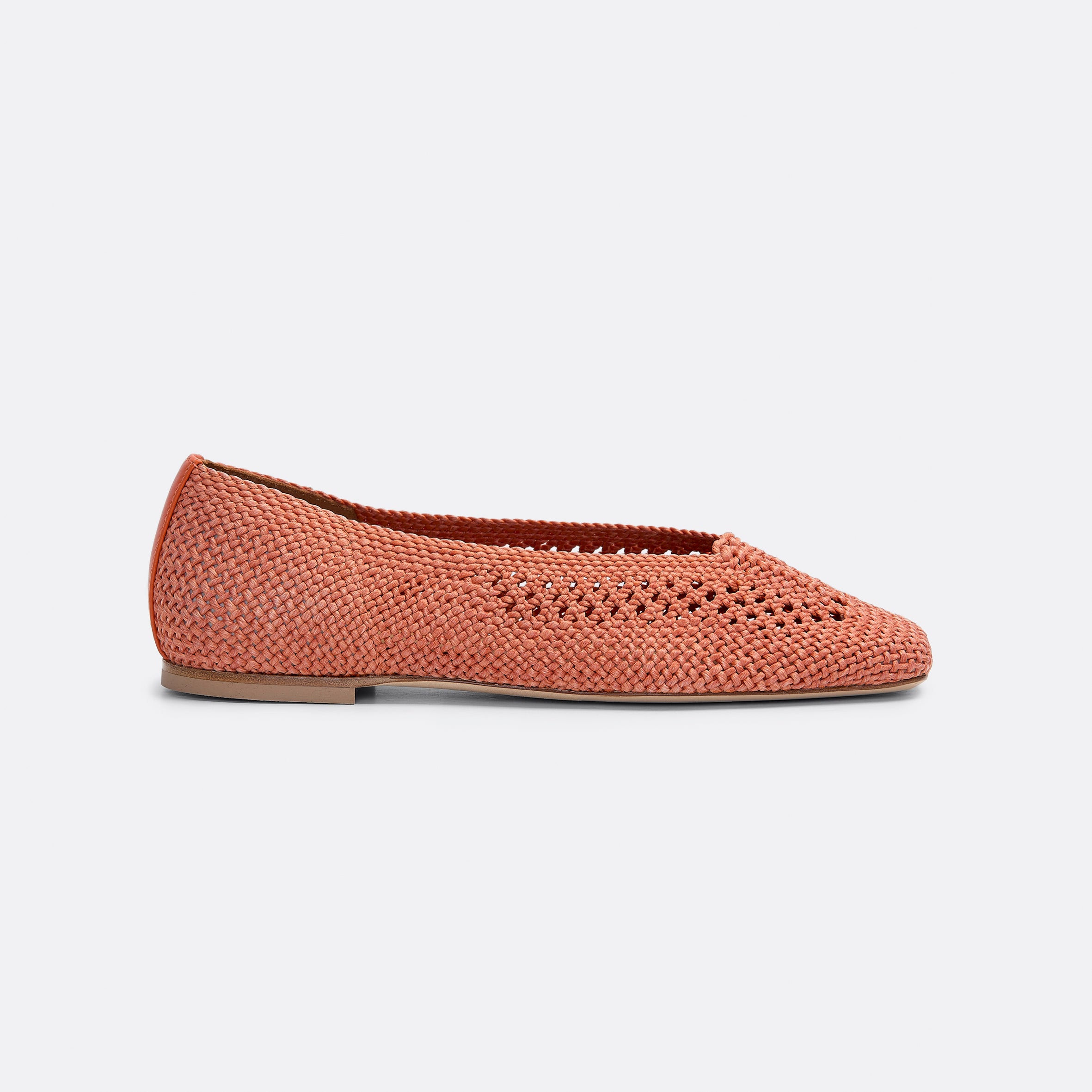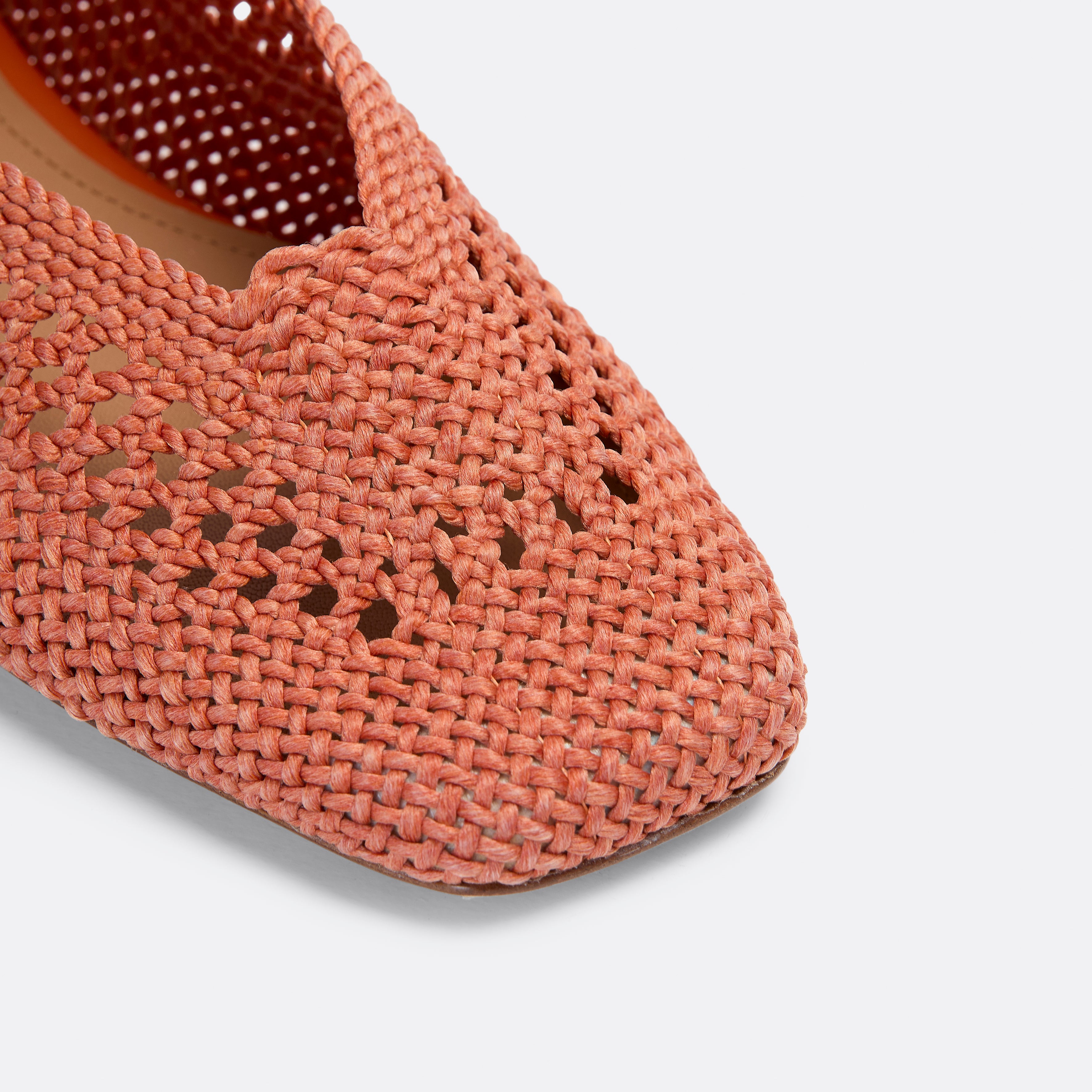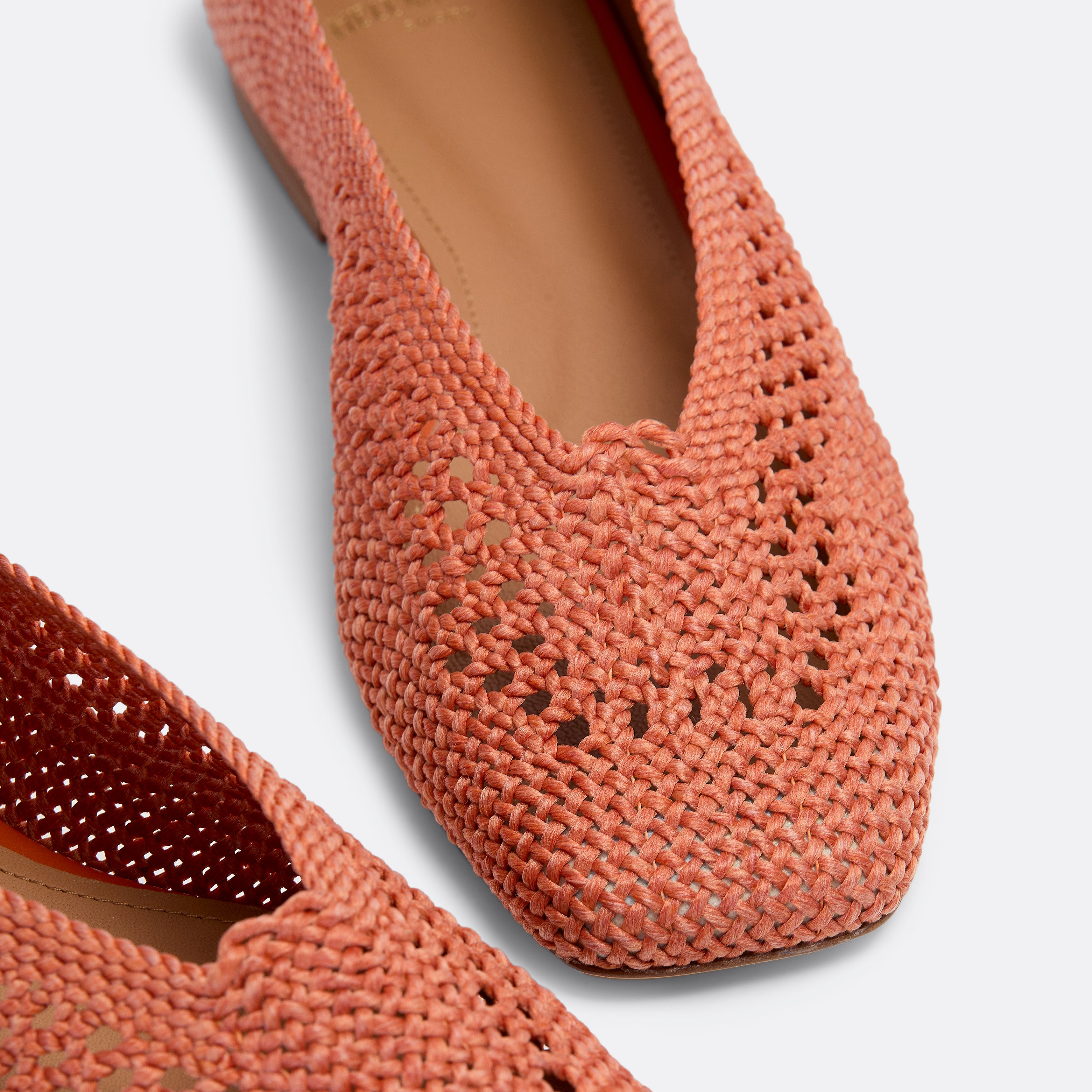A lightweight silhouette infused with summer energy. Azure combines the natural texture of raffia with a vibrant orange tone, creating a flat that feels both relaxed and distinctive.